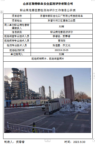 东营华联石油化工厂有限公司胺液再生职业病危害现状评价