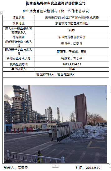 东营华联石油化工厂有限公司酸性水汽提职业病危害现状评价