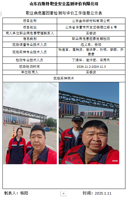山东金岭新材料有限公司职业病危害因素定期检测